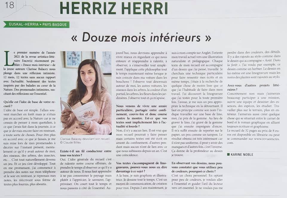 Article de l’hebdomadaire La Semaine du Pays Basque paru le 9/04/2021