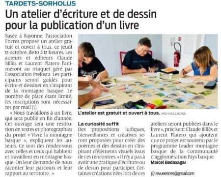 Euskal mendiko herritarrek ere ikerketan parte har dezaten, denei irekitako sorkuntza tailerrek elkarrizketa horiek aipatzeko bidea eskaini digute olerkaritza eta marrazketaren bitartez. Sorkuntza horien aurkezpena proposatua zaizue potreten ondotik.